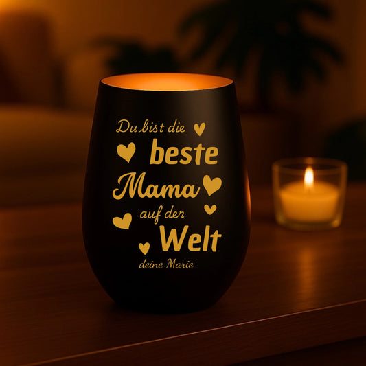 Love - Personalisiertes Herz-Nachtlicht mit LED-Holzfuß (16x15)