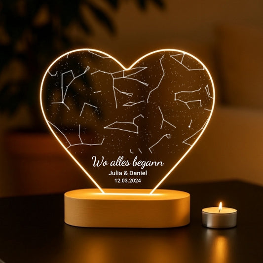 Wo alles begann - Personalisiertes Herz-Nachtlicht mit Sternenhimmel (16x15)