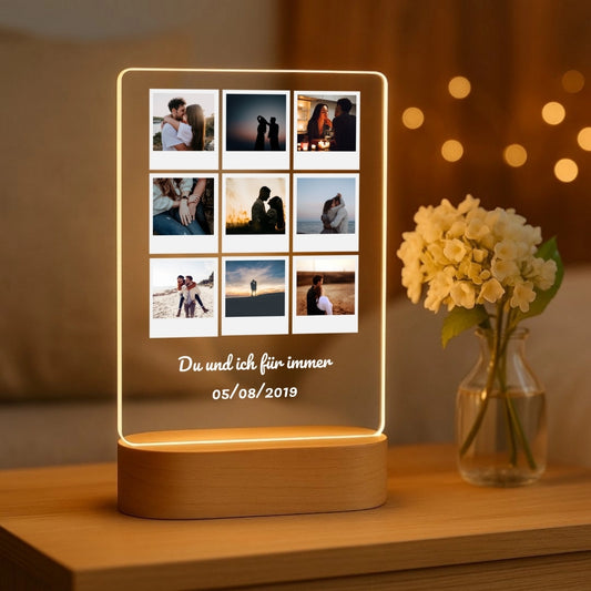 Du und ich für immer - Personalisiertes Nachtlicht mit LED-Holzfuß (14x20)