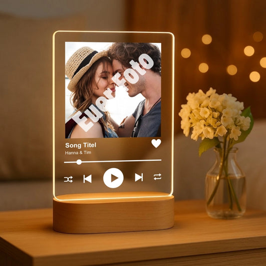 Unser Song - Personalisiertes Nachtlicht mit LED-Holzfuß (14x20)