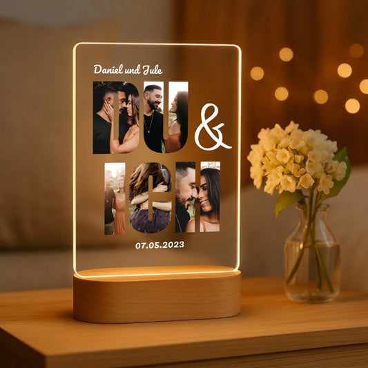 Du & Ich - Personalisiertes Nachtlicht mit LED-Holzfuß (14x20)