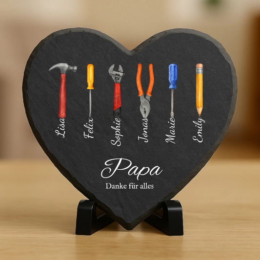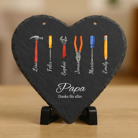 Papa Geschenk mit Werkzeug und Namen - Personalisiertes Schieferherz (20x20)