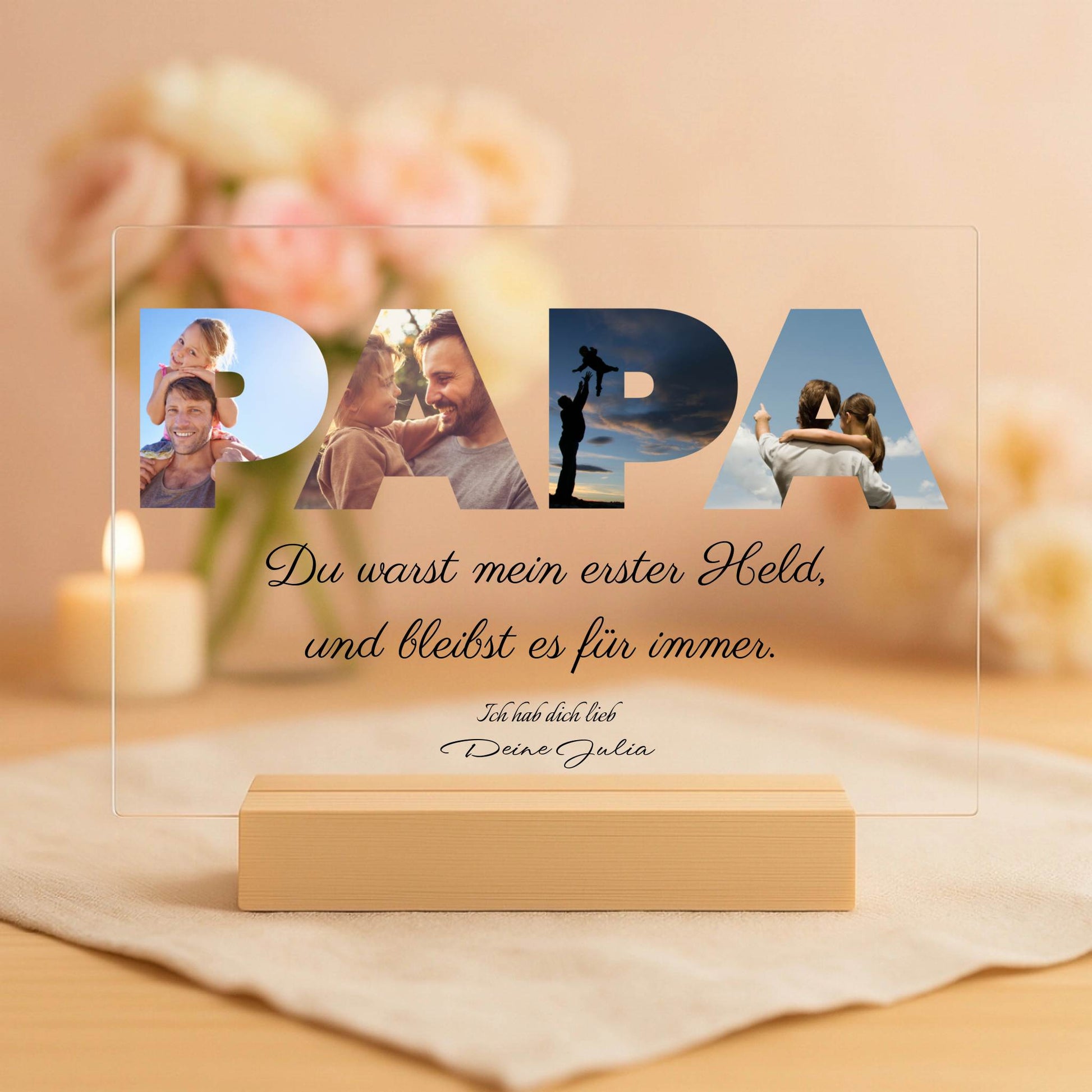 Papa, mein Held - Personalisierte Acryltafel (30x20)